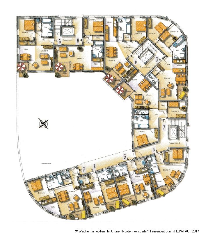 Dem Erwerber stehen 16 verschiedene Grundrisse und Wohnungsgrößen von ca. 46 m² bis ca. 96 m² in Form eines Appartements bis hin zur großzügigen 3-Zimmer-Wohnung zur Verfügung. Vom 1. bis zum 4. Geschoss stehen 9 Wohnungstypen zur Auswahl. Einige Wohnungen verfügen zusätzlich zum Badezimmer über ein Gäste-WC. 3 qualitativ hochwertige Ausstattungslinien stehen zur Auswahl: Zeitlos, Klassik, Premium...