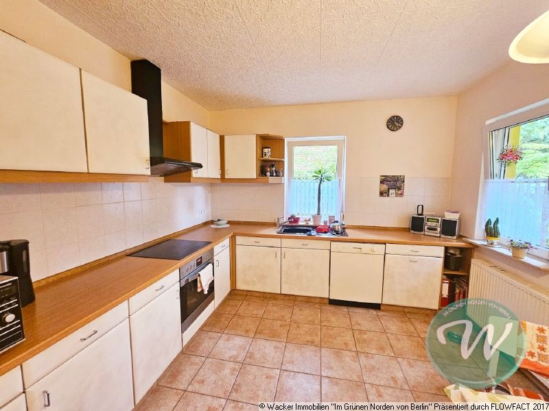 Das gepflegte, mit viel Eigenleistung erstellte Einfamilienhaus aus dem Jahr 1998, liegt in einer ruhigen und waldreichen Wohngegend in Lehnitz. Das Grundstück mit einer Größe von ca. 856 m² ist vollständig erschlossen und verfügt an der rechten Grundstücksgrenze über einen Carport sowie 3 PKW- Stellplätze. Im hinteren Bereich steht ein Gartenhaus in Holzbauweise mit einem Brunnen zu Gartenbewässerung. Der pflegeleicht angelegte Garten bietet viele individuelle Optionen.