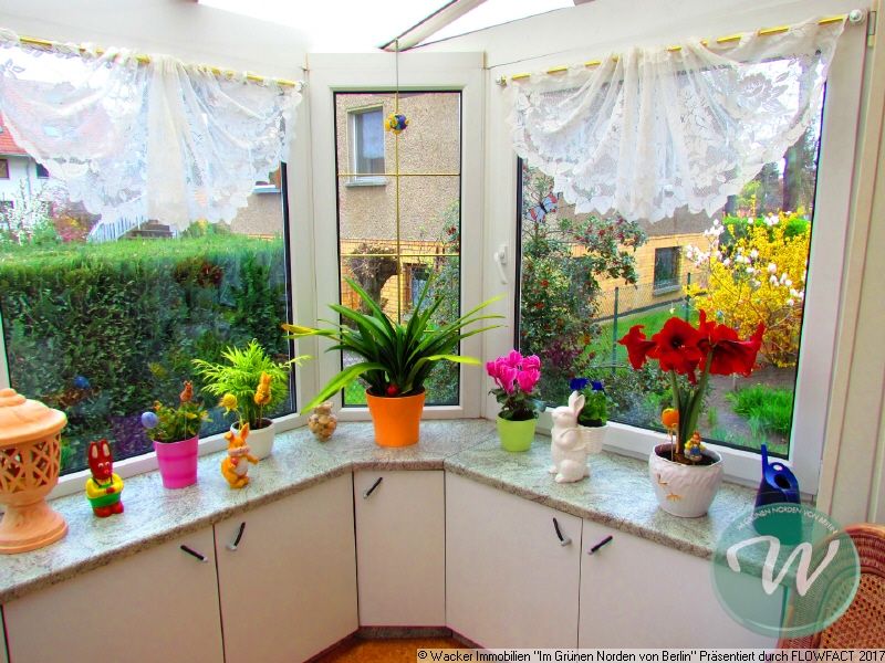 Das angeschlossene Wohnhaus bietet im Erdgeschoss einen Wohnraum, die Küche und einen Wintergarten. Eine Treppe führt in das Obergeschoss, hier finden sich 2 weitere Zimmer, eine Diele und das Tageslichtbad mit Badewanne. Eine Abstellkammer schließt sich ans Bad an.