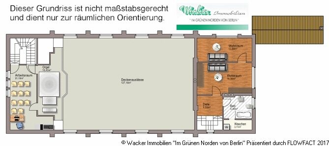 Für den gewerblichen Bereich könnte man sich die Liegenschaft als Tanzschule, Galerie / Atelier, Praxis o. ähnliches vorstellen. Ein Nutzungsänderungsantrag ist zwingend.