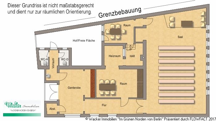 - 3 Räume sowie 2x WC, Foyer, Flur, Heizraum und HWR