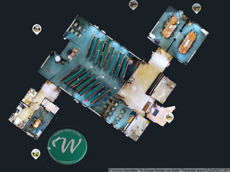 - mehrere Räume, Meetingräume, Flure, Eingangsbereich, sanitäre Anlagen gefliest, Küche und Elektrikraum