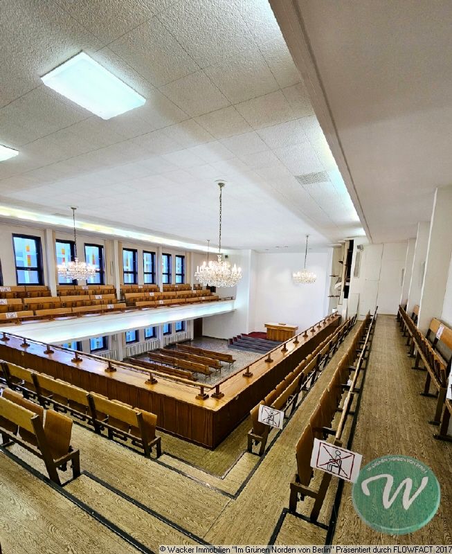 Das Objekt erstreckt sich über 3 Etagen und ist unterkellert. Die Wohn/ Nutzfläche umfasst ca. 1.512 m², aufgeteilt in Kirchengebäude, ca. 708 m² und Wohnhaus, ca. 212 m², Das Grundstück umfasst ca. 868 m². Das Gebäude hat diverse Räume, einen großen Saal, sanitäre Anlagen, eine Küche, Lagerräume etc.